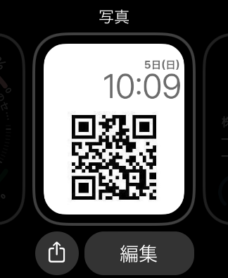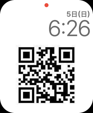 Apple Watch での操作ですがQRコードを出したい時に、文字盤を変えるだけです。Apple Watch 画面を右から左へ強めにスワイプすると文字盤が切り替わります。