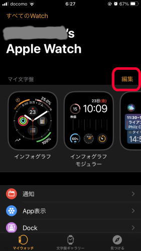 マイ文字盤の [編集] をタップします。