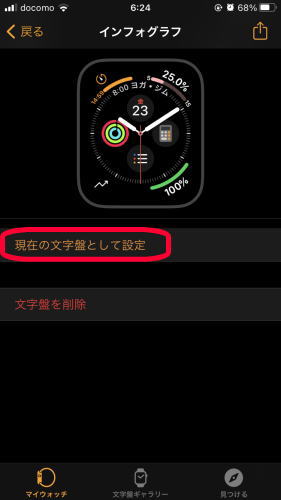 画面をスクロールし、[現在の文字盤として設定] をタップ→いつもの文字盤へ戻ります。